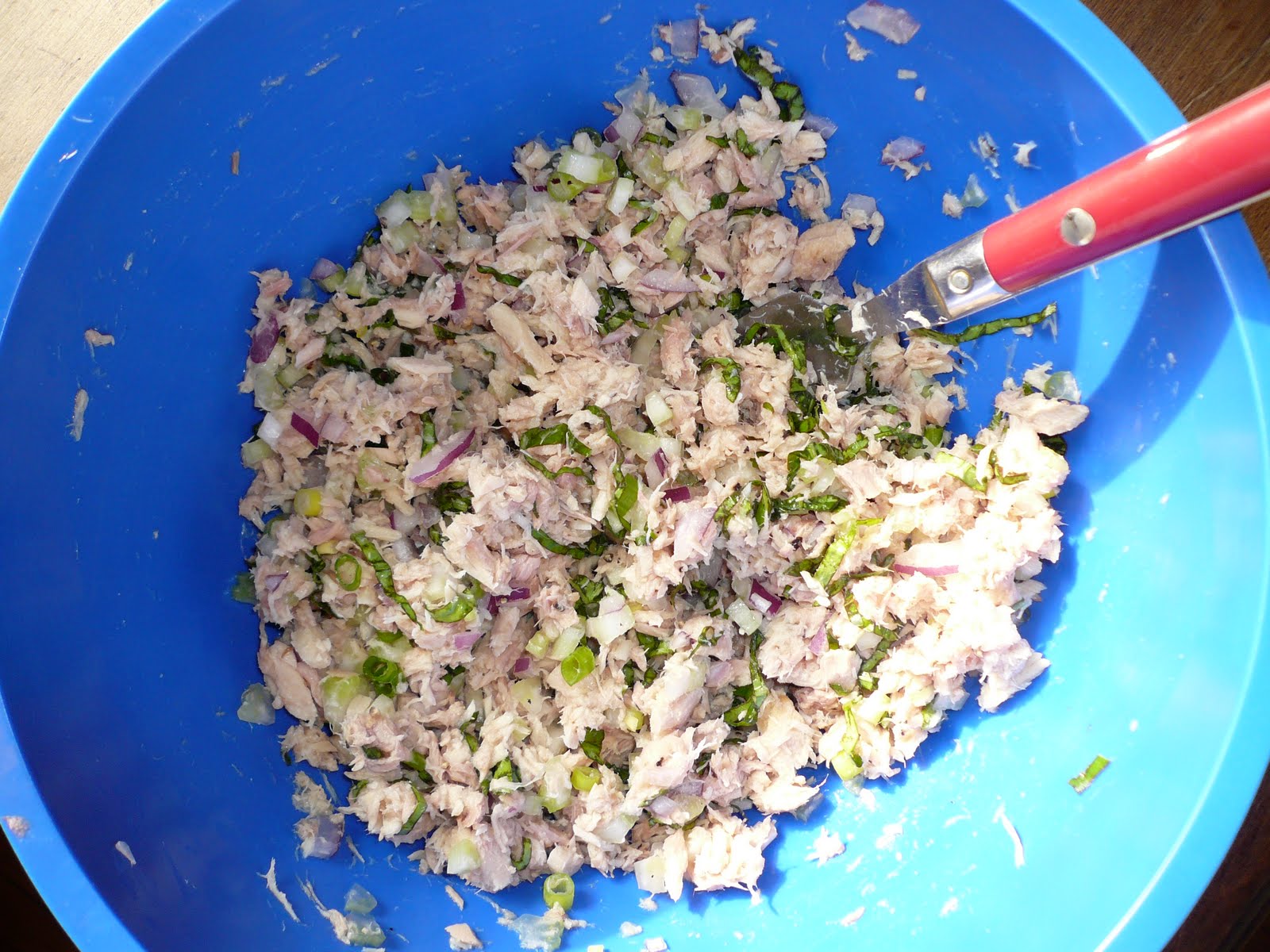 3 small cans (5 ½ oz) tuna in water (solid, chunk light or both) drained (not too dry)